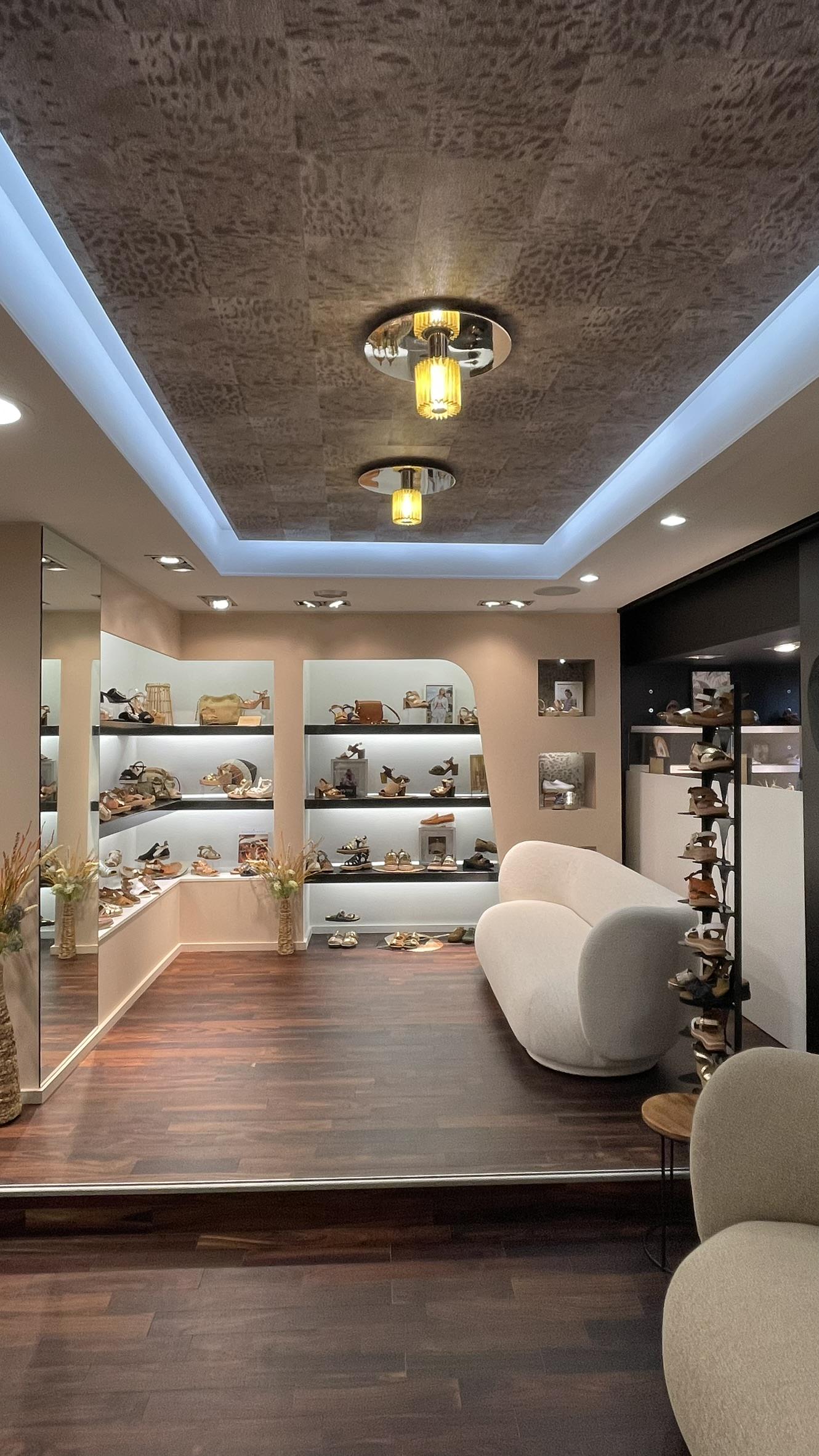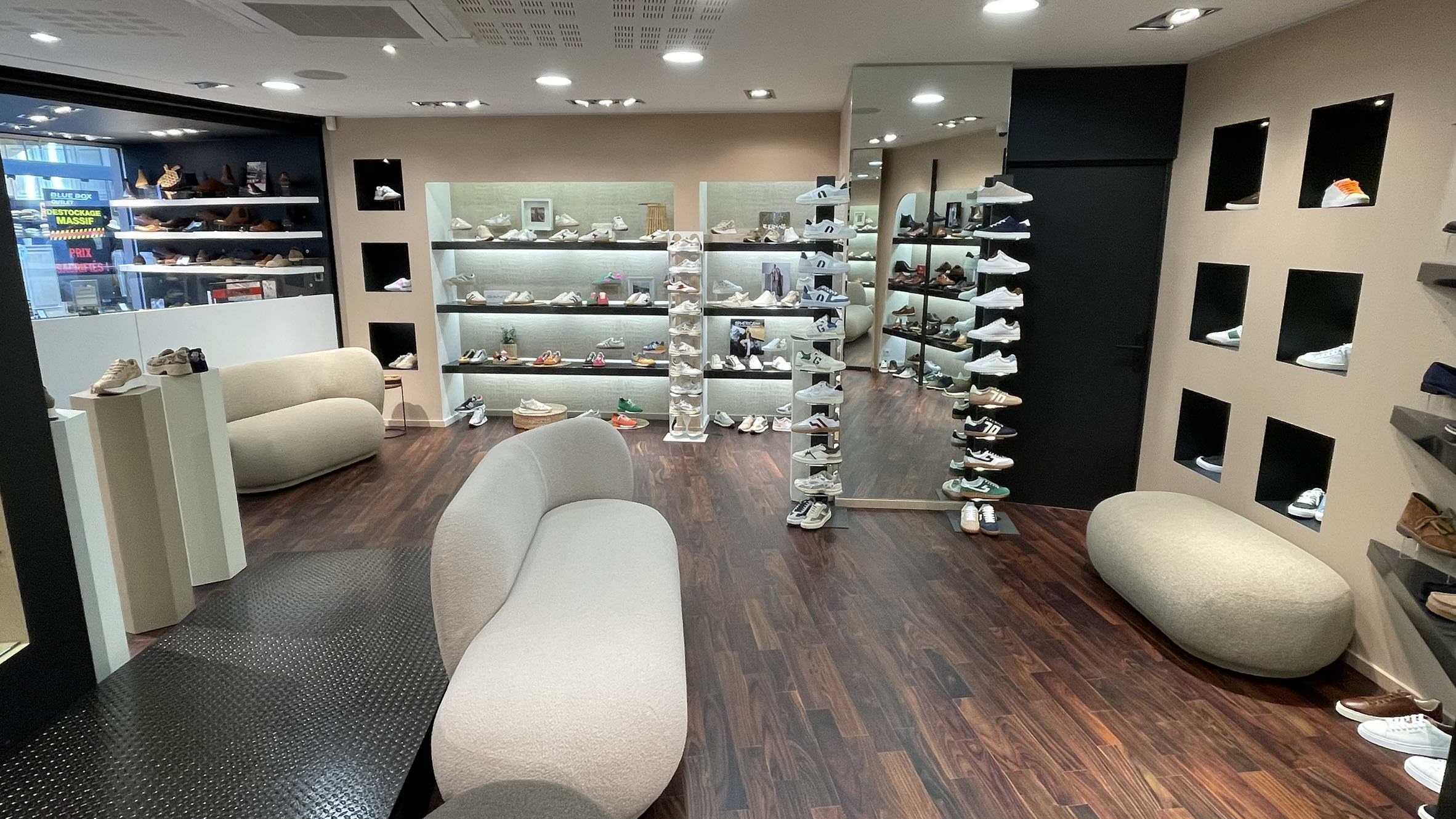 La boutique historique de Saint-Brieuc était jusqu’à présent une boutique mixte. Le projet d’ouvrir une boutique Homme à 50m imposait alors de repenser et de rafraichir la boutique initiale, dédiée à présent uniquement aux femmes. Nous avons opté pour une remise en peinture globale avec des modifications de couleurs et l’ajout de papiers peints, une rénovation des sols et de nouveaux mobiliers tout en rondeur et douceur. Ces derniers proviennent de Ferm Living et les luminaires contemporains, de DCW Éditions.