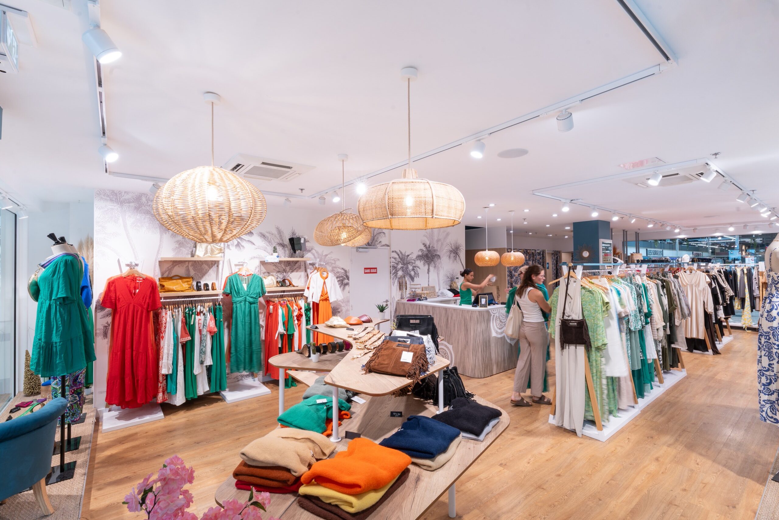 Nous suivons Éric et Karine depuis le début de Vertikal. C’est donc tout naturellement que nous les avons accompagnés dans leur projet d’une seconde boutique dans le centre commercial Grand Quartier. Cette ancienne cellule Orange, singulière par sa grande surface vitrée sur le mail, nous a contraints à imaginer un mobilier de présentation de vêtements fonctionnant en recto/verso. Ainsi le mobilier du magasin est aussi le mobilier de la vitrine. La double entrée du magasin nous a donné la chance de dessiner une table d’attaque aux formes particulières, répondant a deux exigences : la présentation des produits et la circulation. Nous sommes heureux et fiers de participer au développement de la marque Iona aux côtés d’Eric et Karine !