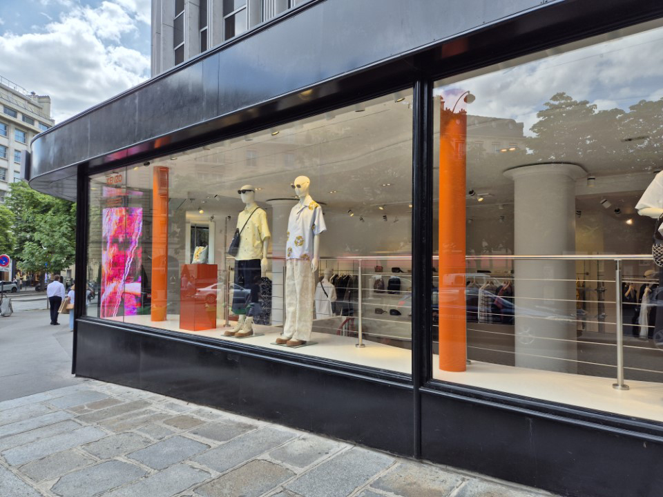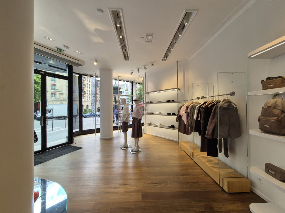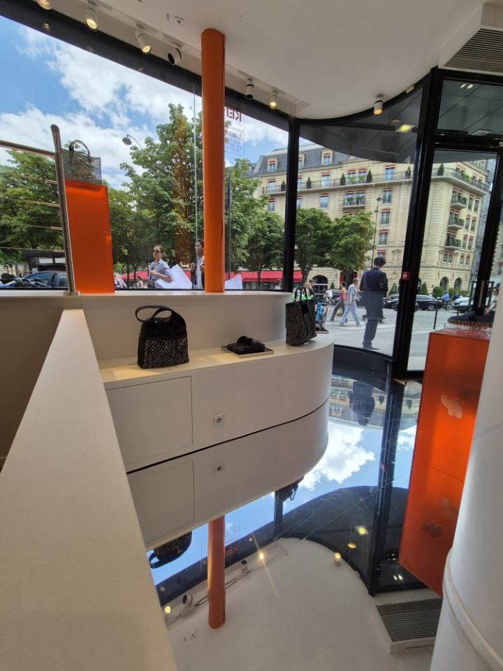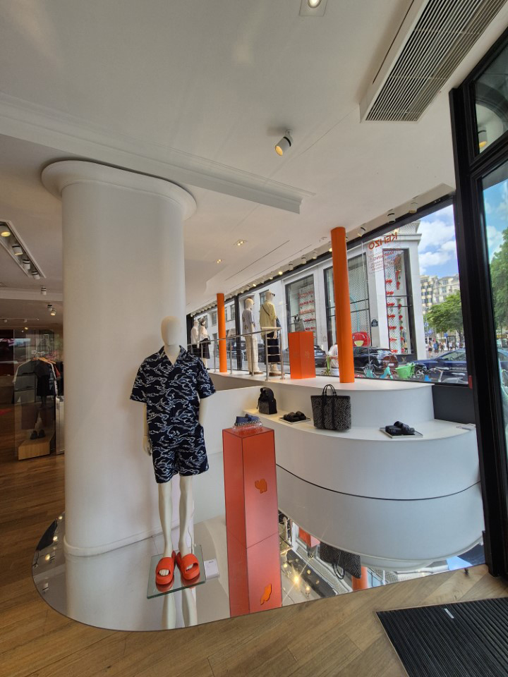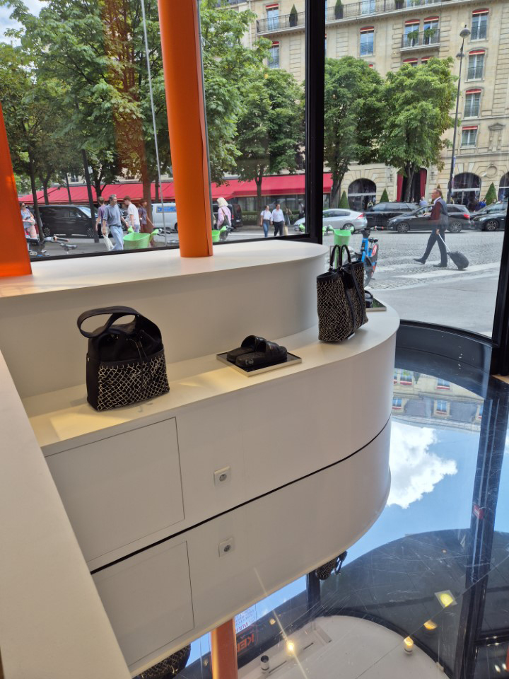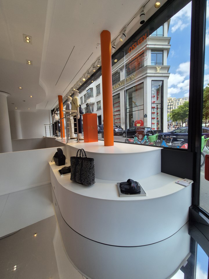 Réalisation du mobilier de vitrine, fabrication et pose de podium, mise en place d’un carde corps. Nous avons également posé un sol effet miroir.