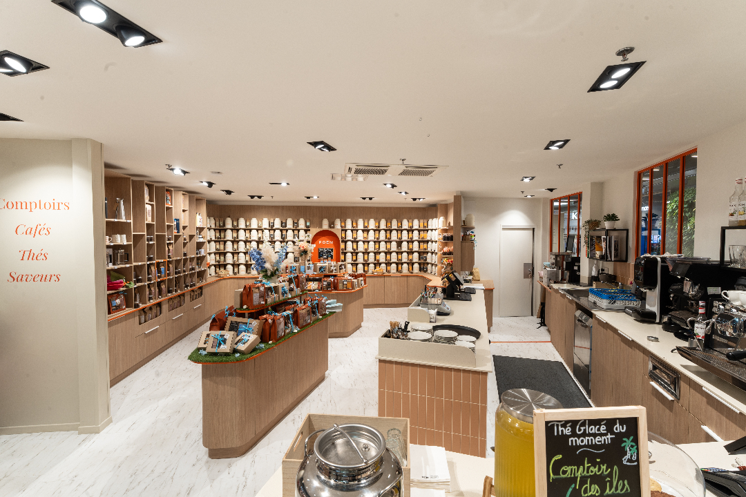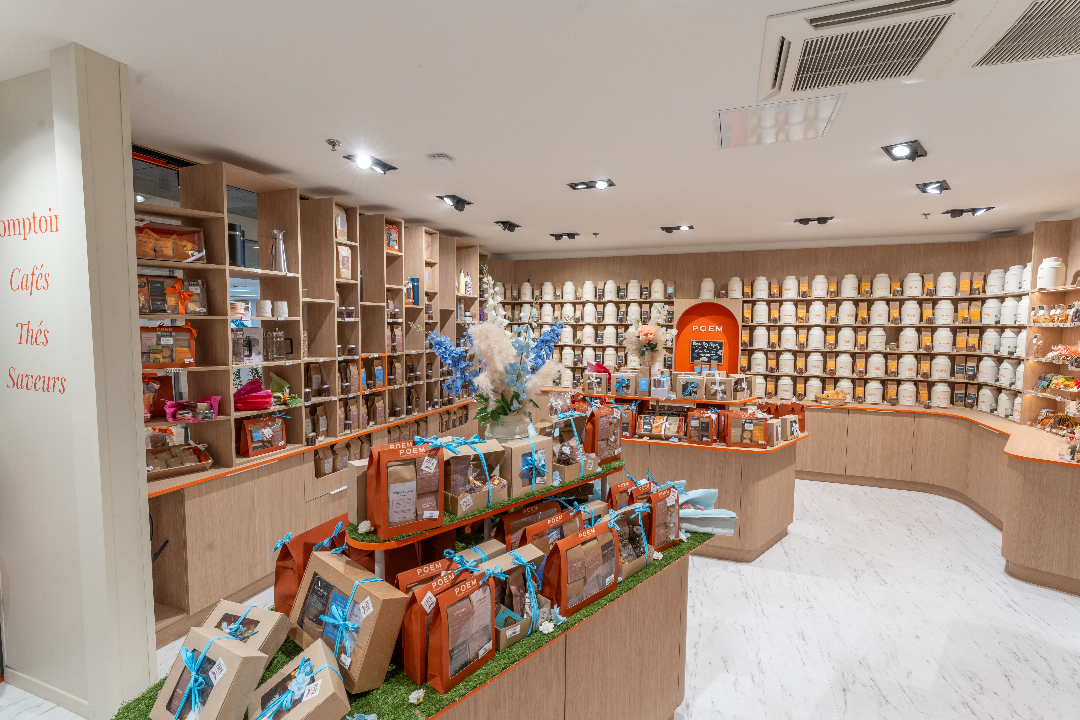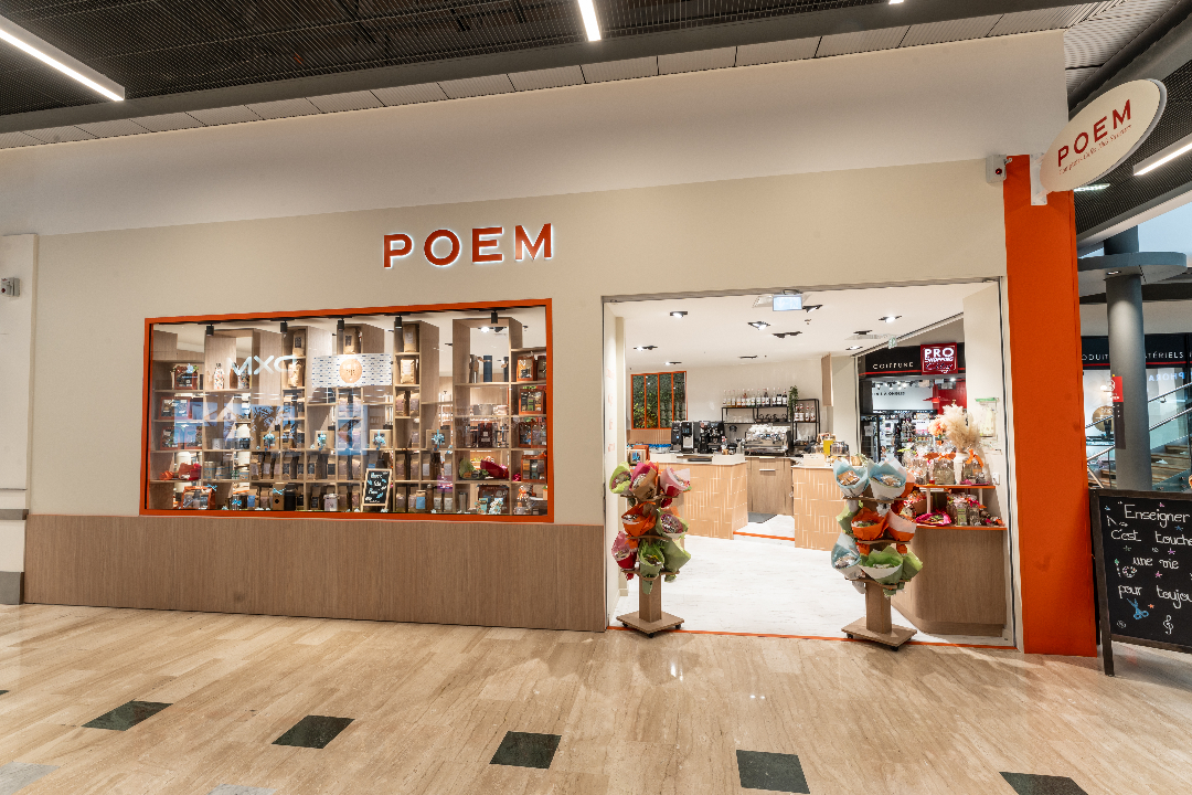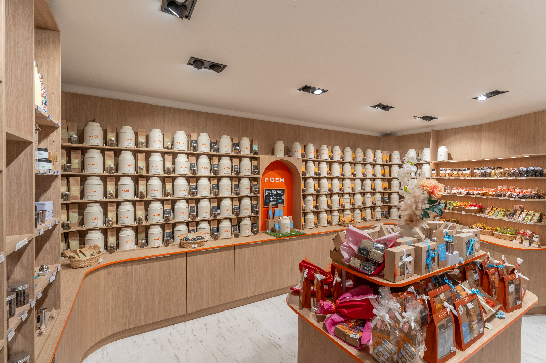 Rozenn et BenoÎt ont fait appel à nos services pour créer de toute pièce l’espace de vente correspondant à leur nouvelle marque. Poem est un lieu convivial, mêlant vente au détail et dégustation en terrasse. Nous avons décliné l’univers du logo sur le mobilier avec le rappel de la couleur orange sur le chant des plans de travail et créé une alcôve centrée sur le mur à thé. La surface de vente se divise en deux, une partie vente en libre-service et un comptoir de travail permettant aux équipes de Poem de réaliser les boissons chaudes et froides proposées à la dégustation en terrasse. Pour ce projet, Vertikal à participé à toutes les étapes, du premier croquis à la livraison d’un espace fonctionnel. L’enjeu était de taille ! Les échanges avec Rozenn et Benoît nous ont permis de créer un lieu à leur image : marque, univers, espace de travail. Des projets comme celui-là, on en veut tous les jours ! Merci Rozenn et Benoit.